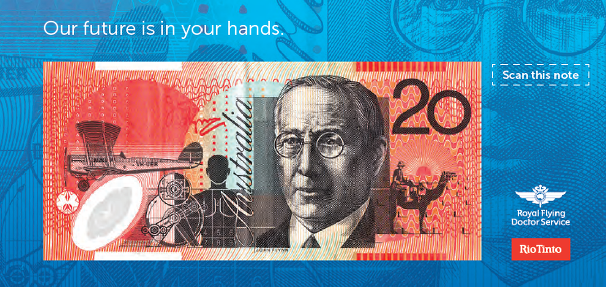 The campaign features pioneering augmented reality software. Users will be able to bring Reverend John Flynn, founder of the RFDS, to life by scanning his image on the Australian $20 note with their smartphones.
