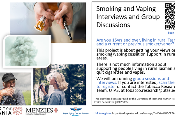 ContactRFDS Tasmania and UTAS are partnering on a study to explore smoking and vaping support in rural and remote Tasmania.