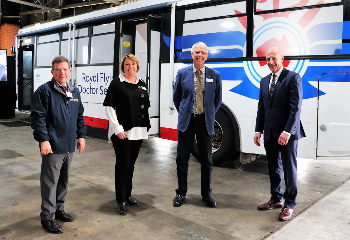 Two former public transport buses donated by the Tasmanian Government and transformed into mobile health clinics with a $100,000 Commonwealth Government grant and funds raised by Rotary Tasmania were officially handed over to Royal Flying Doctor Service Tasmania at a launch event held at the RFDS Western Junction base on Thursday, July 30.
